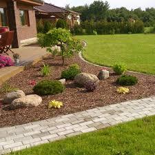 Estetyczne ściółkowanie kory sosnowej wokół siedziby firmy, poprawiające wizerunek i ograniczające chwasty.